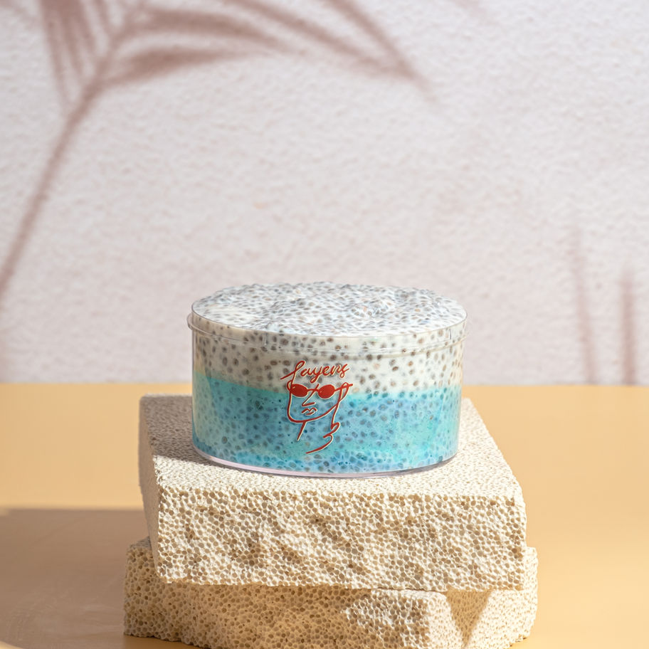Base: Organic Chia seeds • Unsweetened coconut milk • Thai coconut cream • Blue Spirulina (Blue Majik) • Thai Coconut Flower syrup (100%) • Pinch of sea salt